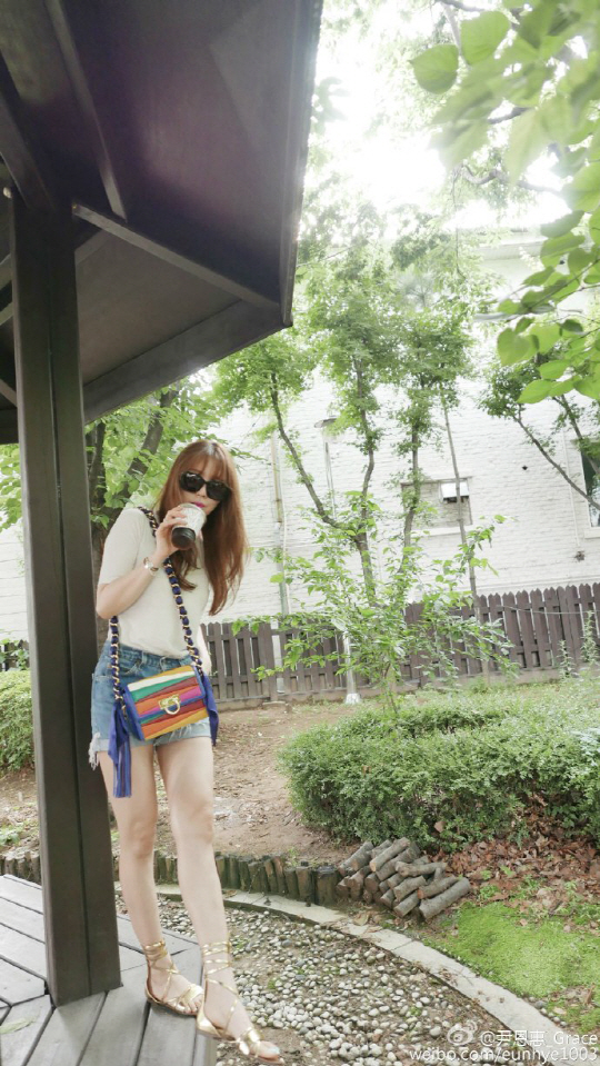 윤은혜는 4일 자신의 웨이보에 "오랜만에 나오니 기분 전환되네~"라는 글과 함께 사진을 게재했다.