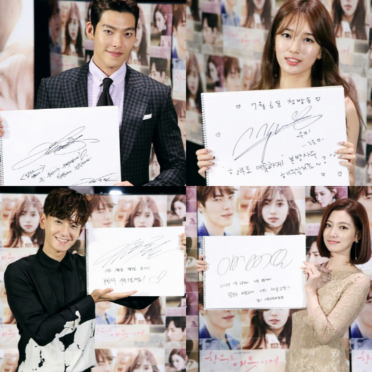 이와 관련 오늘 첫 방송을 앞두고 있는 김우빈-배수지-임주환-임주은 등이 '함부로 애틋하게' 첫 방송에 관심을 바라는 진솔한 마음을 담아 '본방사수 독려 메시지'를 선사한 것. 지난 4일 제작발표회 현장에서 오랜만에 만난 네 배우들은 누가 먼저랄 것도 없이 직접 스케치북 위에다가 한 글자 한 글자 정성스럽게 '본방사수 메시지'를 적은 후 각자 특유의 '매력만점' 포즈로 인증샷을 완성했다.