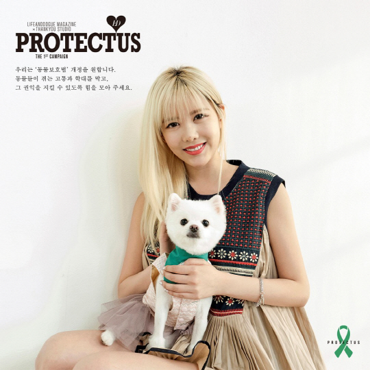 이밖에도 4년전 유기견을 입양해 새 삶을 찾았다는 안혜경, 14년전 길거리 개를 지금까지 키우며 소중한 친구가 되었따는 블락비 태일, 티아라 규리와 밥풀이, 효민과 영미니, 레인보우 노을과 행복이, 레인보우 재경과 마카롱까지 모두 동물보호법 개정을 촉구하는 한 마음으로 뭉쳤다.