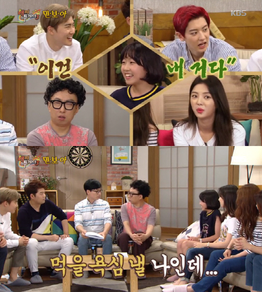 7일 방송된 KBS 2TV '해피투게더3'에서는 '믿.보.아 특집'으로 아역 배우 김환희, 진지희, 서신애가 출연했다.