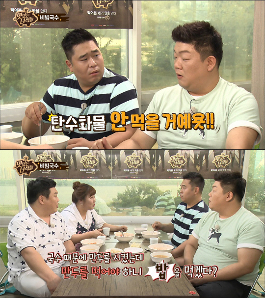 비빔국수를 맛있게 먹기위해 만두를 주문했으나 만두가 나왔으니 밥도 주문해야 한다는 논리를 펼치자 이를 지켜본 다른 출연자들이 "이러다 국도 시키고 반찬도 시키겠다"며 구박을 한 것.