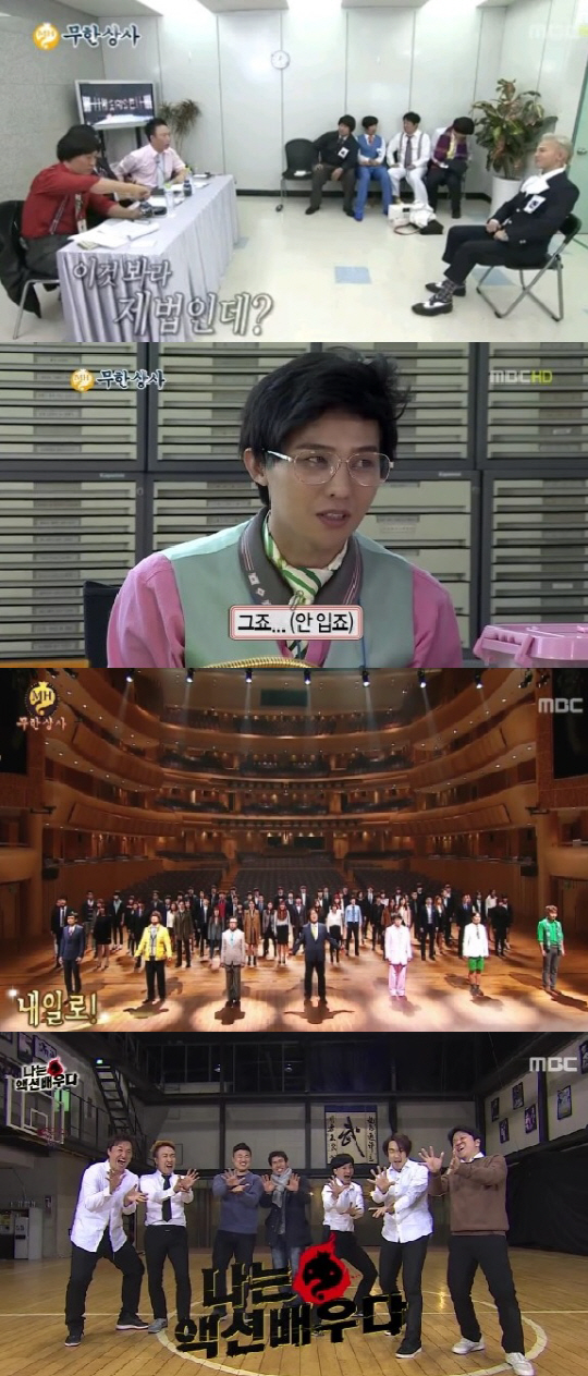 액션 블록버스터 버전 '무한상사'도 기획했다. 아직 본편이 나오지 않았지만 2015년 1월 방송에서 우리나라 최고 무술감독 정두홍이 합류해 멤버들에게 액션을 전수했다. 마치 소지섭 주연의 영화 '회사원'을 보는 듯 직장인 수트를 빼입은 멤버들의 액션은 눈길을 모으기 충분했다. '장르물'로 꾸며질 것으로 기대되는 이번 '무한상사'에서 정두홍에게 전수받은 액션도 함께 녹여낼지 관심이 집중된다.