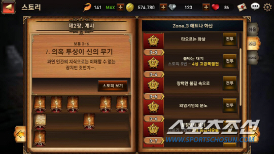 게임과 함께 굴러가는 스토리 라인은 지금까지 나온 어떤 모바일게임과 비교해도 손색이 없을 정도로 완벽합니다. 대부분의 다른 게임들은 쉬움 난이도 이후 질적인 콘텐츠 확장보다 유저들에게 반복 플레이를 강요하는 양적인 콘텐츠 확장으로 일관해 왔었습니다. 그러나 '스펠나인'은 교묘하게 이 부분을 스토리와 연계 시키면서 게임 플레이의 동기를 부여, 유저들을 붙잡는데 성공했습니다.