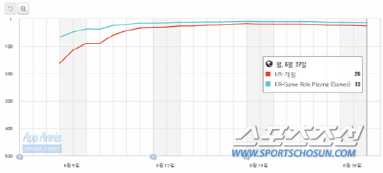 초반의 탄탄한 게임성과 콘텐츠는 신규 게임이 힘들다는 모바일시장에서 긍정적인 성과로 나타났습니다. 초반부터 10위권 내에 진입해 대박의 성과를 거두지는 못했지만 20위권을 오르내리며 최근 등장한 게임들 중 수준급의 성과를 내고 있습니다.