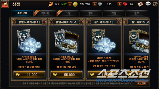 게임의 전반적인 난이도도 낮은 편이어서 경험치 패키지를 빠르게 성장을 이어간다면 보통 이상의 스토리까지 누구나 충분히 확인 할 수 있고 초반에 게임의 재미를 붙이기에 충분합니다.