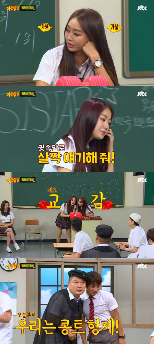 그룹 씨스타 효린과 소유가 귀로 교감하는 '귓속말 콩트'를 선보여 웃음을 안겼다.