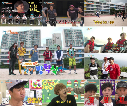 [스포츠조선닷컴 김준석 기자] '1박 2일' 멤버들이 이번엔 말 그대로 숨 넘어가게 웃겼다. 철없는 패션으로 무장한 멤버들은 학창시절의 추억을 소환한 특별한 여름방학식을 맞아 운동장을 누비고 입수를 했고, 도시락을 몰래 먹으며 깔깔대는 등 그 어느 때보다 큰 웃음을 안겼다. 김종민의 모교인 창도초등학교에서 진행돼 더욱 특별한 웃음이었다.