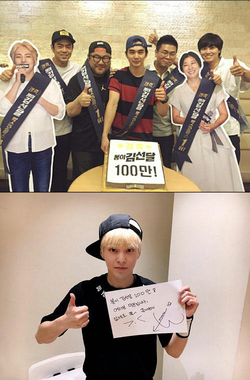 유승호, 고창석, 연우진, 전석호는 "경축! '봉이 김선달' 100만"이라고 새겨진 케익을 들고 100만 돌파를 자축하는 모습을 담은 인증샷으로 눈길을 끈다. 또한 사기패의 막내 '견이' 역의 시우민 역시 영화 속 대사를 인용하여 "'봉이 김선달' 100만! 여러분 덕분입니다! 앞으로도 쭉~ 즐기면서!"라는 멘트로 진심 어린 감사의 인사를 했다.