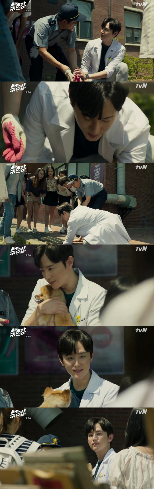 11일 방송에서 주혜성(권율 분)은 수의사 가운을 깔끔하게 입은 모습으로 등장, 환기구 연통에 빠진 개를 맨손으로 구해냈다. 연통 안에서 경계심이 높아진 개를 보고 모두 주저했으나 혜성은 달랐다. 갇힌 지 오래되어 영양 상태도 좋지 않아 보이는 개를 그냥 둘 수 없었던 것.