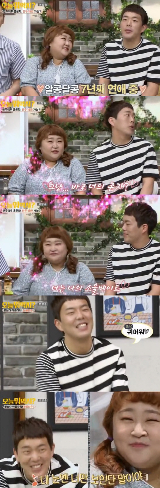 김민기는 첫 소개부터 자신을 개그계의 최수종이라고 소개하며 여자친구 홍윤화가 좋아하는 만두 요리를 의뢰했다. 이어 여자친구의 장점을 묻는 질문에 "그냥 옆에 있는 게 장점이다"고 말해 남다른 애정을 드러냈다. 홍윤화 역시 김민기를 자신의 소울 메이트라고 말했다.
