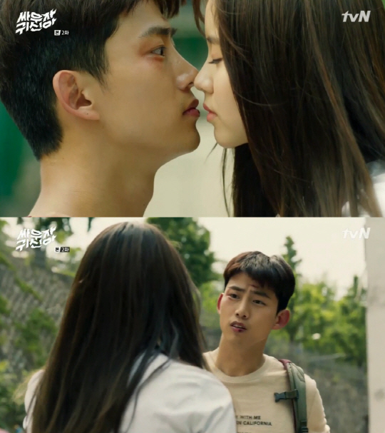 12일 방송된 tvN '싸우자 귀신아'에서 김현지(김소현)가 박봉팔(택연)에게 수작을 부렸다.