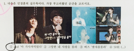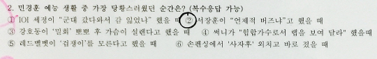 3번은 그간 '아는 형님'을 장식한 게스트 중 가장 아름다운(?) 분을 골라 달라는 문제죠. 대세 걸그룹 세정은 물론 레드벨벳 웬디에 프로그램에서 키스신을 함께 했던 이국주, 그리고 고준희를 능가하는 단발머리를 가진 강균성이 후보로 올랐는데요. 민경훈은 ②번 트와이스 정연을 가장 마음에 들어 했어요. 상남자답게, 솔직하게, 사진있게 "되게 예뻤다"고 답한 민경훈이지만 응원의 한마디를 부탁하자 쑥쓰러워하며 사양했네요.