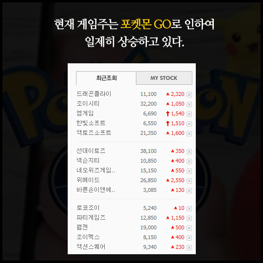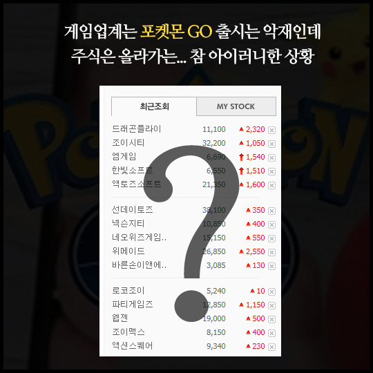 게임업계는 '포켓몬 GO' 출시는 악재인데 주식은 올라가는.. 참 아이러니한 상황