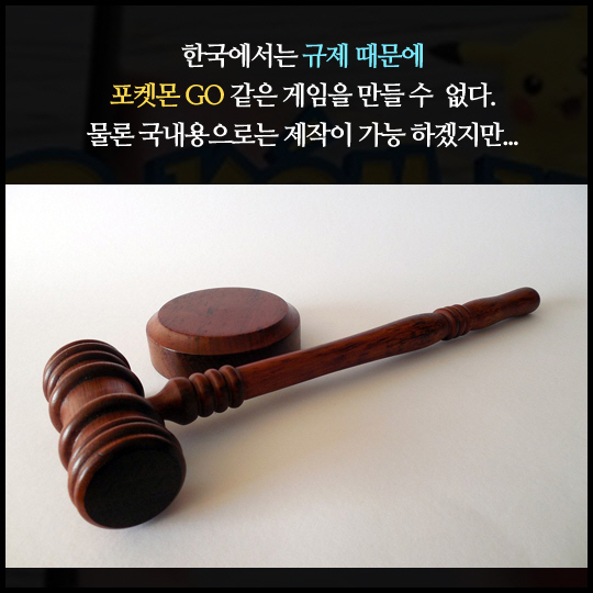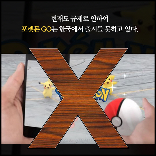 한국에서는 규제로 인하여 '포켓몬 GO'같은 게임을 만들수 없다.