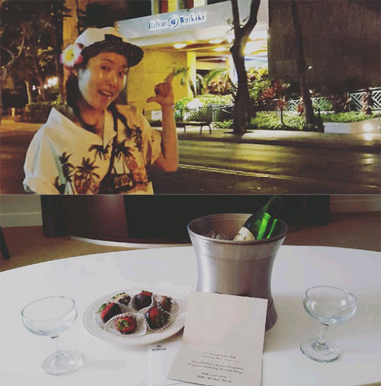 박슬기는 13일 자신의 인스타그램에 "와이키키 비치 앞 힐튼와이키키. 완전 대박 오션뷰. 이런데서 살면 걱정 근심 따위 없을 듯. 호텔 들어오자 마자 받은 선물. 허니문 축하한다는 말과 함께 May your hearts keep dancing always...♡ 말이 예쁘네. 늘 심장이 콩다닥 춤을 추는 나날들만 연속이길"라는 글과 함께 한 장의 사진을 게재했다.