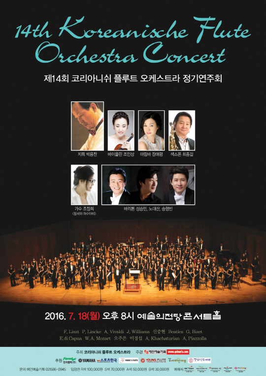 플루티스트로만 구성된 국내 최초이자 유일한 앙상블 단체인 코리아니쉬 플루트 오케스트라가 오는 18일 오후 8시 예술의전당 콘서트홀에서 제14회 정기연주회를 연다.