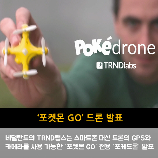 네덜란드의 TRND랩스는 스마트폰 대신 드론의 GPS와 카메라를 사용 가능한 '포켓몬 GO' 전용 '포케드론' 발표