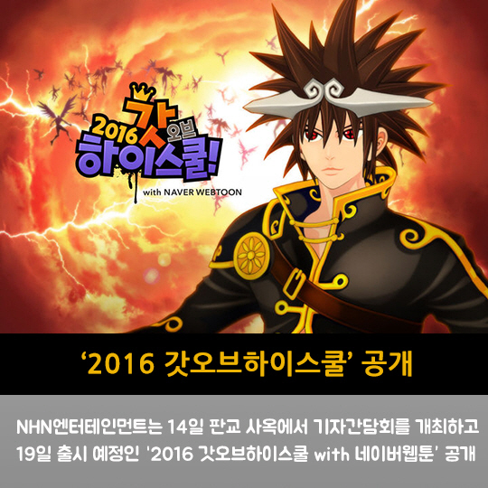 NHN엔터테인먼트는 14일 판교 사옥에서 기자간담회를 개최하고 19일 출시 예정인 '2016 갓오브하이스쿨 with 네이버웹툰' 공개