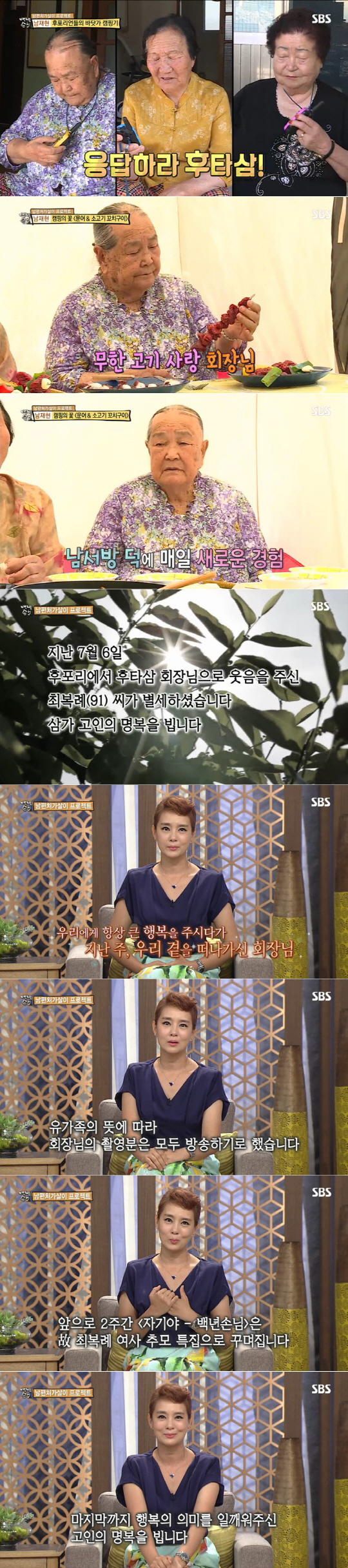 [스포츠조선닷컴 김준석 기자] '백년손님' 제작진과 MC 김원희가 '후타삼 회장님' 최복례 여사의 명복을 빌었다.