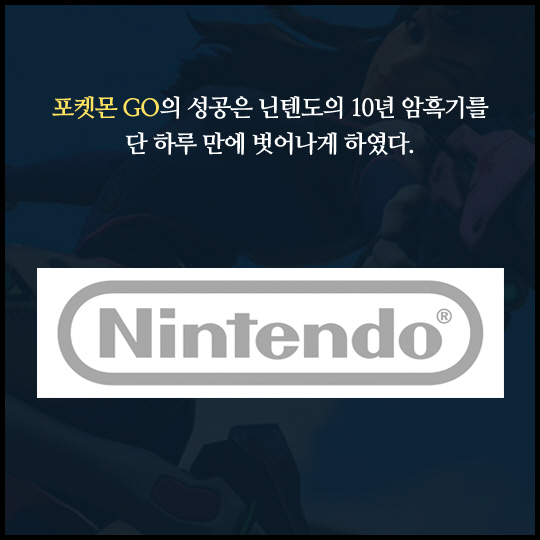"포켓몬 GO"는 닌텐도의 10년 암흑기를 단 하루만에 벚어나게 하였다.