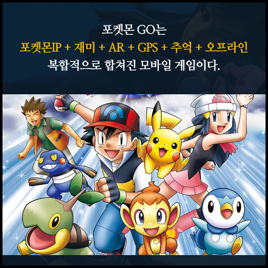 포켓몬GO는 포켓몬IP+재미+AR+LBS+추억+오프라인 복합적으로 합쳐진 합쳐진 모바일 게임이다.