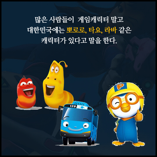 많은 사람들이 게임캐릭터 말고 대한민국에는 뽀로로,타요,라바같은 캐릭터가 있다고 말울 한다.