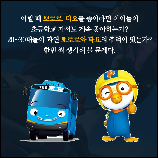20~30대들이 과연 뽀로로와 타요의 추억이 있는가? 한번씩 생각해볼 문제다.