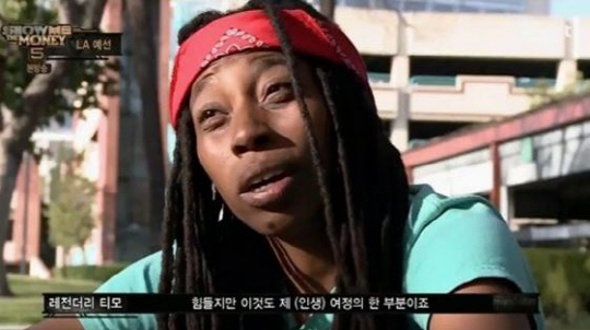 이번 시즌 최초로 진행된 미국 예선에서 대화하듯 읊조리는 래핑과 독특한 추임새로 프로듀서들의 마음을 사로잡은 흑인 여성 래퍼. 프로듀서 도끼가 함께 작업하고 싶다는 마음을 드러냈을 만큼 실력을 지녔다. 특히 레전더리 티모는 홈리스라는 사실을 당당히 밝히고 자신의 동성 연인까지 소개해 큰 화제를 모았다. 막강한 흑인 여성 래퍼의 한국행을 기대했지만 비자와 여권 문제로 인해 일방적으로 '쇼미더머니5' 제작진과 연락을 피해 아쉽게 본선 경쟁에 참여하지 못했다.