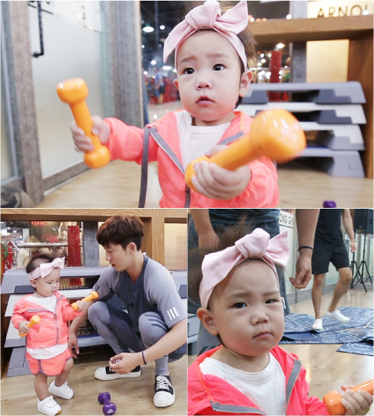 그런가 하면 로희는 아빠의 코치에 따라 아령을 위아래로 열심히 움직이며 팔 근육을 키우고 있는 모습. 로희는 두 눈에 힘을 딱 주고, 까치발까지 든 채 프로 피트니스 모델 같은 포스를 풍겨시선을 사로잡는다. 나아가 로희는 아령을 든 두 손을 VJ 삼촌에게 쭉 내밀며 자신의 힘 자랑해 엄마 미소를 자아낸다.