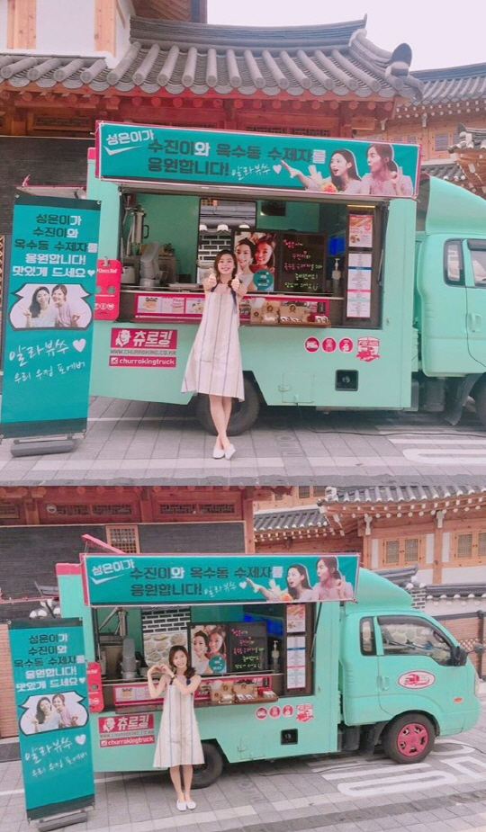 또 심영순의 인스타그램에도 "성은이 단짝 수진과 '옥수동 수제자' 팀에게 보낸 커피차 히트다 히트. '옥수동 수제자' 박수진 김성은. 쑤&썽. 커피차 선물. 감동 넘치는 메뉴. 맛 또한 감동. 고마워요"라는 글과 함께 박수진이 손 하트를 하고 있는 사진이 올라왔다.