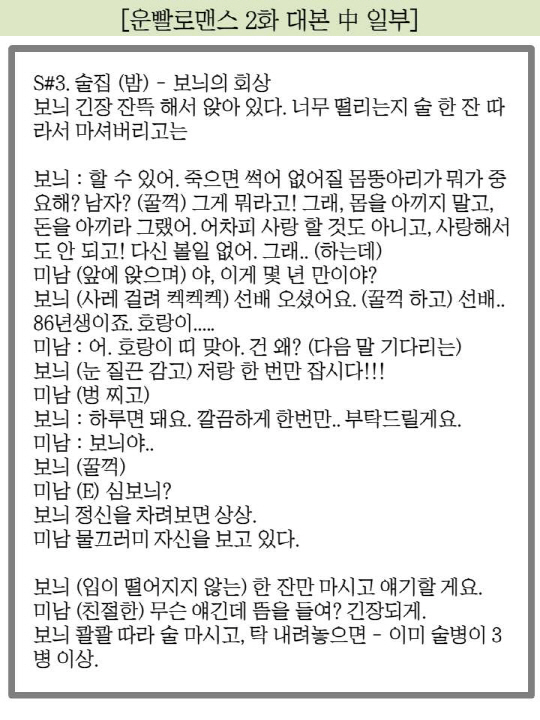 믿보황, 로코퀸으로 안방극장이 가장 환영하는 여배우 황정음이지만 아직 노련한 베테랑 배우로 불리기에는 부족함이 많은 것이 사실이다. 한 때 연기력 혹평의 단골 주인공이었지만 배우로서 성장한 모습을 보여주던 그는 이번 작품을 통해서는 확실히 정체된 모습을 들키고 말았다. 자신만의 연기패턴에 저도 모르게 익숙해져 감정의 깊이를 연기 속에 담아내기 보다 익숙한 패턴 속에 그 감정을 구겨 넣는 식의 연기가 '운빨로맨스'의 심보늬를 통해 여러차례 발견되었기 때문이다.
