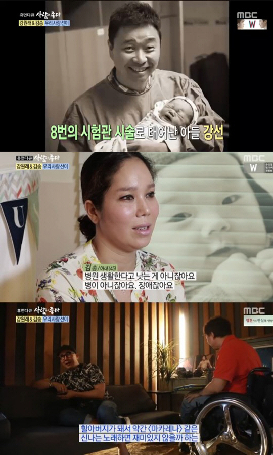17일 MBC '휴먼다큐 사람이 좋다'에서는 강원래와 김송 부부 그리고 아들 선이의 이야기가 방송됐다.