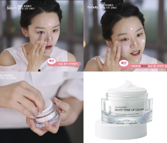 신혜선이 사용한 크림은 아쿠탑 '아쿠아 블루밍 모이스트 톤업 크림'으로 별도의 베이스 메이크업 제품을 바르지 않아도 보다 매끈하고 화사해진 피부를 연출하도록 돕는다.