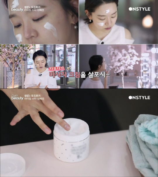 신혜선은 "황사와 미세먼지가 심각한 요즘 모공 속까지 깨끗하게 클렌징 해주지 않으면 트러블이 발생하기 쉽다"며 자신의 클렌징 크림과 클렌징 마사지 법을 공개했다.