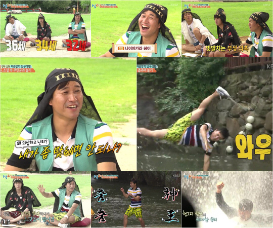 보면 볼수록 신기한 예상치 못한 퀴즈 실력으로 대결의 반전 묘미를 선사한 김종민은 계곡에서 펼쳐진 점심 식사 배 댄스 대결에서 '1박 2일' 공식 춤신춤왕답게 멋진 브레이크 댄스를 선보였다. 또한 그는 열정적인 춤으로 인해 극한의 배고픔이 찾아오자 수락폭포에 뛰어들어 10초 동안 엄청난 물줄기를 받아내는 용기를 보여줬고, 맛있는 점심까지 쟁취해 눈길을 끌었다. narusi@sportschosun.com