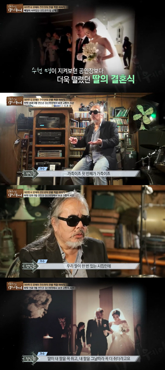 수천 명이 지켜보던 공연장보다 더욱 떨렸다던 딸의 결혼식, 전인권은 처음이자 마지막으로 선글라스를 벗고 딸과 함께 입장했다.