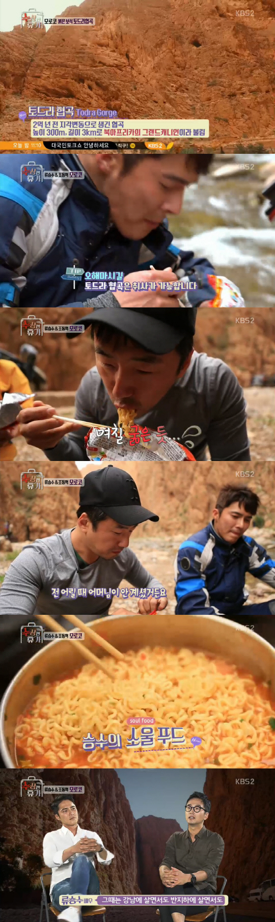 18일 방송된 KBS2 '수상한 휴가'에서는 모로코 마라케시부터 사하라 사막까지 이어지는 1000km 바이크 종주에 나선 류승수와 조동혁의 마지막 여행기가 그려졌다.