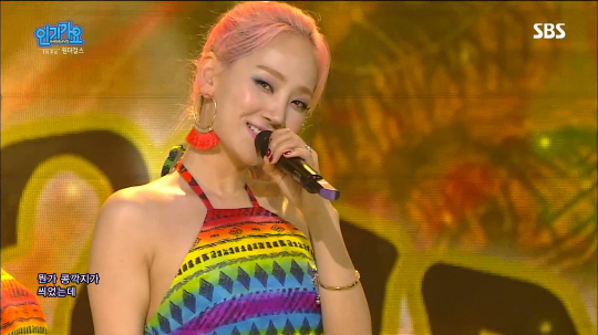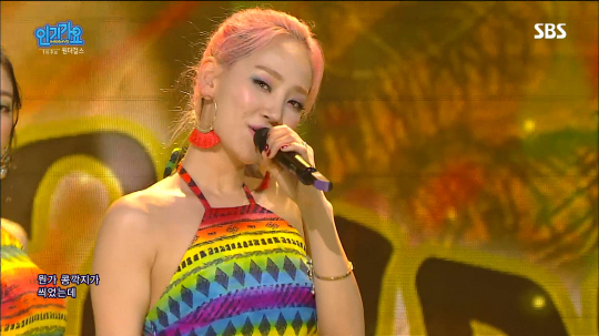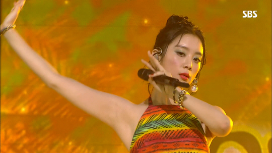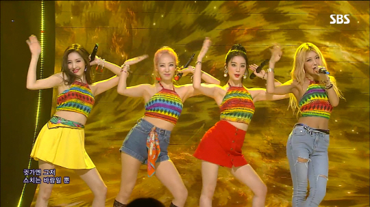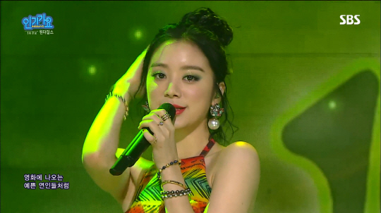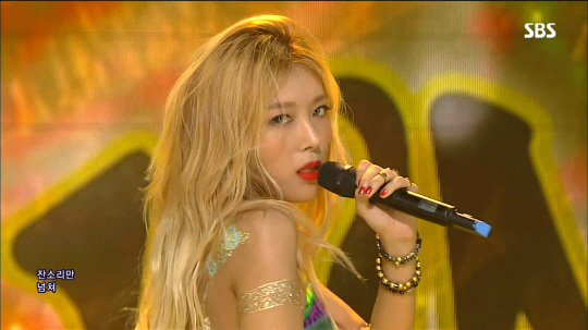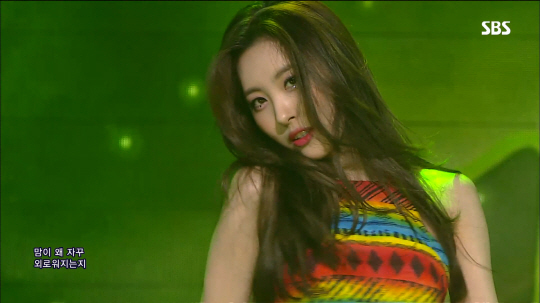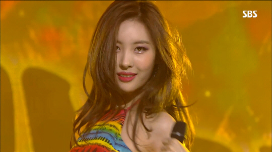 오렌지와 퍼플이라니! 상상도 못할 컬러 조합으로 아름다움을 뽐낸 선미. 동서양을 막론하고 신비로운 컬러로 뽑히는 보라색, 퍼플 컬러는 선미의 눈 두덩이에 살포시 내려앉았다. 라벤더 컬러로 아이홀을 채우고 눈 꼬리를 딥 퍼플 컬러로 그라데이션 해 눈이 더욱 커보이는 효과를 노렸다. 치크는 오렌지 컬러로 애플존을 가득 메웠다.립컬러는 다홍빛이 도는 진한 오렌지 컬러로 풀 커버해 선미의 도톰한 입술을 더욱 돋보이게 연출했다.