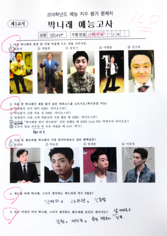 [스포츠조선 이승미 기자, 이종현 인턴 기자] 스포츠조선 기자들이 박나래의 숙취해소 음료 광고 촬영장을 기습 방문했습니다. 그만의 도발적인 언행으로 인터뷰를 핫하게 만들어준 박.나.래. 인터뷰 말미 기자들은 심혈을 기울여 작성한 예능고사 문제지를 박나래에게 전달했습니다. 예능 대세 박나래가 푼 예능고사엔 어떤 답들이 적혀있을까요?