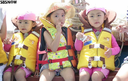 세 아이들은 자매라 해도 믿을 만큼 동그랗고 커다란 눈이 닮아 있다. 특히 슈의 딸 '라희라율'은 쌍둥이답게 똑 같은 표정을 짓고 있어 웃음을 자아낸다.
