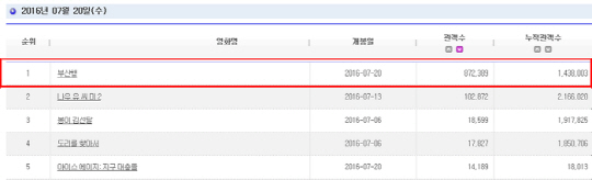 이 같이 역대 최고 오프닝 기록을 갈아치운 영화 '부산행'은 이미 개봉 전부터 흥행을 예견케 했다. 칸 국제 영화제 이후 쏟아진 세계적인 극찬, 대한민국 유수 언론 매체의 압도적 호평, 평균 95%에 육박하는 폭발적 사전 시사 점유율에 이어 역대 한국 영화 사전 예매량 기록을 모두 갈아치우며 '명량' '설국열차'의 예매 기록을 모두 누른 바 있다.
