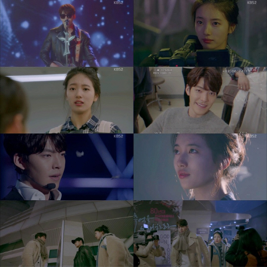 이날 방송에서는 신준영(김우빈)이 자신의 콘서트장에서 노을(배수지)에게 '곰인형 고백'을 안기며 사랑을 표현하는 모습이 담겼다. 다큐를 찍으며 노을에게 3개월 연애를 제안했던 신준영은 소속사 대표가 노을을 잘라버리자 노을을 만나러 갔던 상황. 노을의 전화에서 남편이라고 저장된 번호를 봤던 신준영은 노을에게 남편에 대해 캐물었고, 노을에게 남편이 없다는 사실을 듣고 다시 다큐PD로 고용했다.