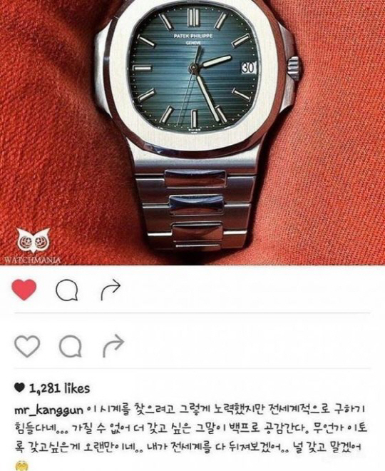 강민혁은 최근 자신의 인스타그램에 "이 시계를 찾으려고 그렇게 노력했지만 전세계적으로 구하기 힘들다네"라며, "가질 수 없어 더 갖고 싶은 그 말이 백프로 공감 간다. 무언가 갖고 싶은 게 오랜만이네. 내가 전세계를 다 뒤져보겠어. 널 갖고 말겠어"라는 글을 게재했다.