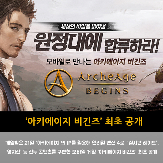 게임빌은 21일 '아키에이지'의 IP를 활용해 언리얼 엔진 4로 '실시간 레이드', '영지전' 등 전투 콘텐츠를 구현한 모바일 게임 '아키에이지 비긴즈' 최초 공개