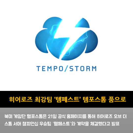 북미 게임단 템포스톰은 21일 공식 홈페이지를 통해 히어로즈 오브 더 스톰 서머 챔피언십 우승팀 '템페스트'와 계약을 체결했다고 발표