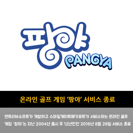 엔트리브소프트가 개발하고 스마일게이트메가포트가 서비스하는 온라인 골프 게임 '팡야'는 지난 2004년 출시 후 12년만인 2016년 8월 29일 서비스 종료