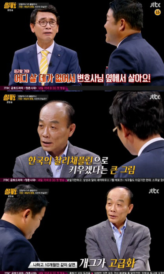 이에 전원책은 "정 이사할 곳이 없다면, 나는 모친과 처 그리고 반려견과 함께 지내고 있다. 내 2층 서재에 있는 방 빌려주겠다"라고 제안했다. 그러나 유시민은 김구라에게 "절대 가지마라, 매일 구박만 받는다"고 질색하며 "살 데가 없어서 변호사님 옆에서 살겠나"라고 충고했다.