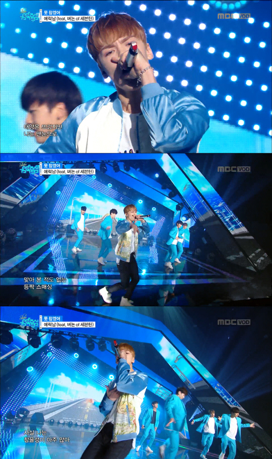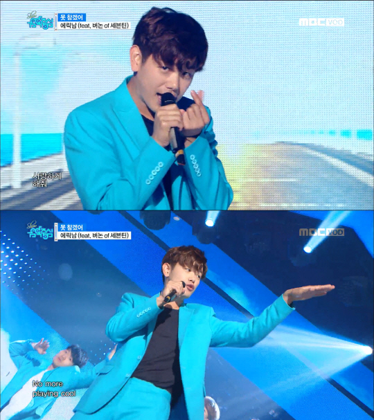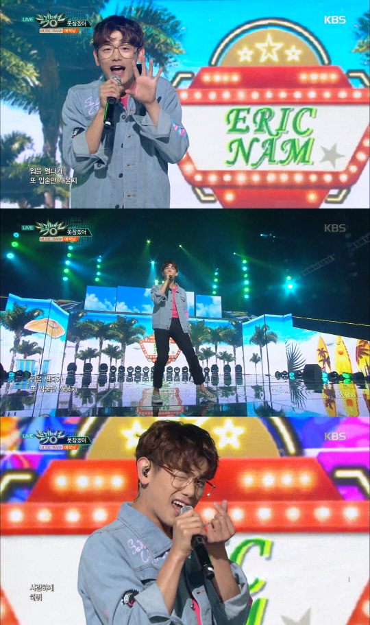 에릭남은 차분한 스타일 뿐만 아니라 캐주얼한 스타일까지 완벽 소화할 수 있다는 것을 다음 무대에서 바로 증명했다. 청재킷을 입고 등장한 에릭남은 한 층 더 귀엽고 발랄한 모습을 보여줬다. 재킷 안에 입은 핑크 티셔츠와 스타일의 완성 쉼표 머리는 그의 귀여움을 한껏 끌어올려줬고, 다른 사람이 쓰면 할아버지 안경이 될 것 같은 얼굴만 한 안경도 에릭남이 쓰니 깜찍 폭발 아이템이 됐다.