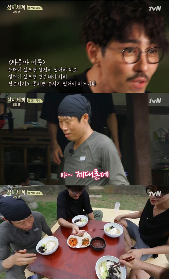 하지만 차승원의 걱정은 현실이됐다. 손호준은 육수를 준비하면서 양파껍질을 까지도 않고 넣었고, 계란 지단을 준비하면서 노른자와 흰자를 불리해 노른자에 물을 넣고 지단을 부쳤다.
