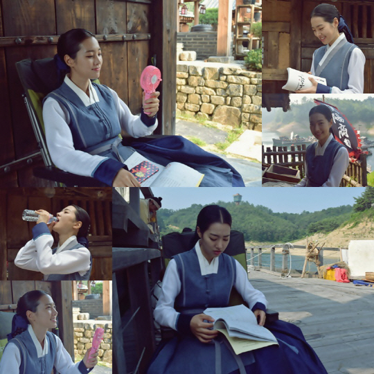 그런가하면 진세연은 무더위를 쫓으면서도 연기에 대한 열정만은 뜨겁게 불태우는 모습으로 보는 이들을 감탄케 하고 있다. 강렬한 태양을 피해 그늘을 찾아 이곳저곳으로 자리를 옮겨 다니면서도 두 손에 대본을 꼭 쥐고는 대사 암기와 '대본 열공'에 빠져있는 것. 두툼한 한복 때문에 가만히 있어도 땀이 뚝뚝 떨어지는 상황임에도 진세연은 아랑곳 않고 오로지 옥녀 되기에만 올인하는, 각별한 연기 열정을 쏟아내고 있다.